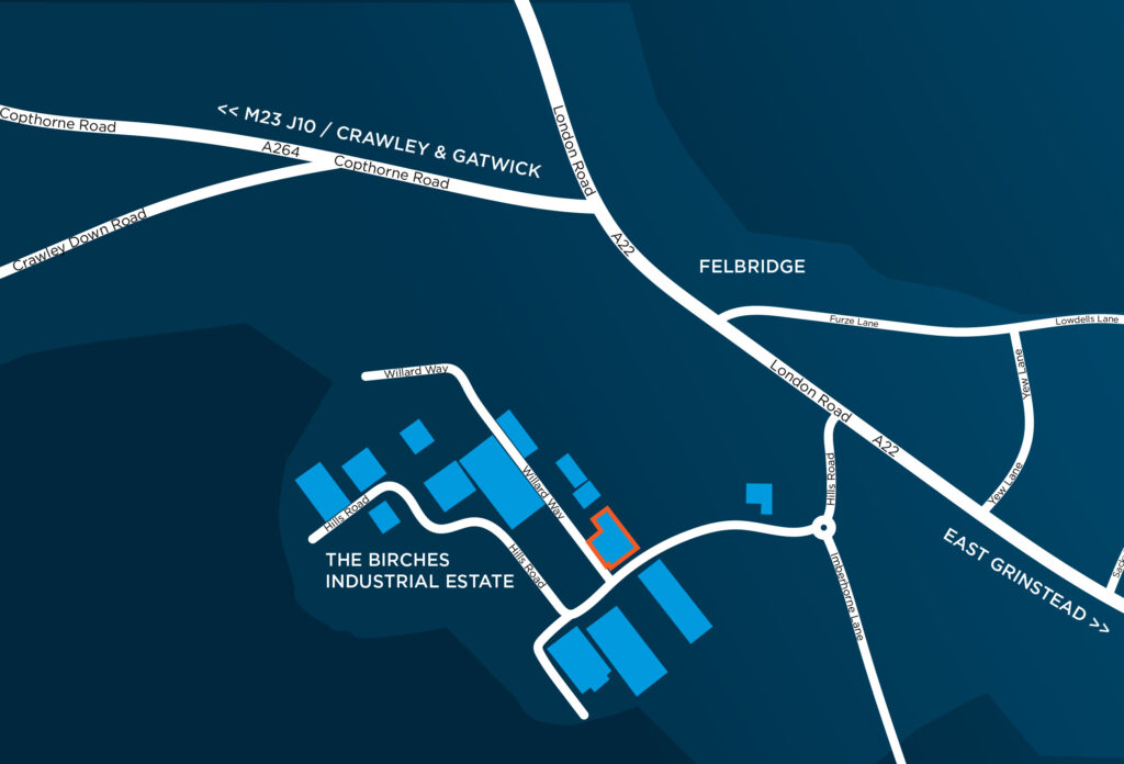The Birches Industrial Estate is situated approximately 1.4 miles from East Grinstead town centre, giving easy access to local amenities and services.